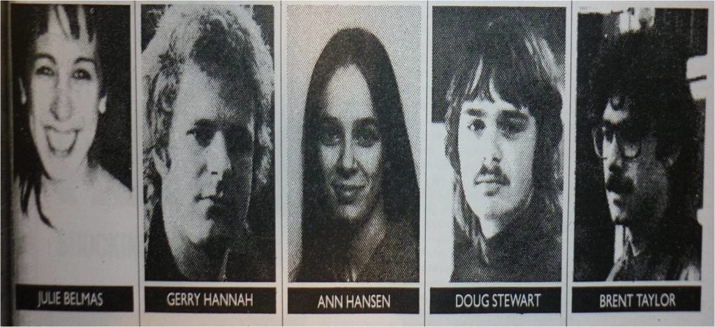 20. januara 1982. godine grupa od petoro anarhista je uhapšena: Ann Hansen, Brent Taylor, Juliet Caroline Belmas, Doug Stewart i Gerry Hannah. Suđenje je naravno bilo izuzetno medijski ispraćeno, a advokati odbrane su tvrdili da je tokom praćenja i hapšenja grupe, policija kršila svoje propise. Ispred suda su se povremeno okupljali ekološki, feministički i drugi aktivisti, a organizovani su i brojni benefiti kako bi se pokrili troškovi odbrane. Gerry Hannah i ostali anarhisti su dobili podršku od Jella Biafre i posebno od prijateljskog benda “D.O.A” koji je snimio i nekoliko benefit singlova, poput “Right to be wild” iz 1983. godine.